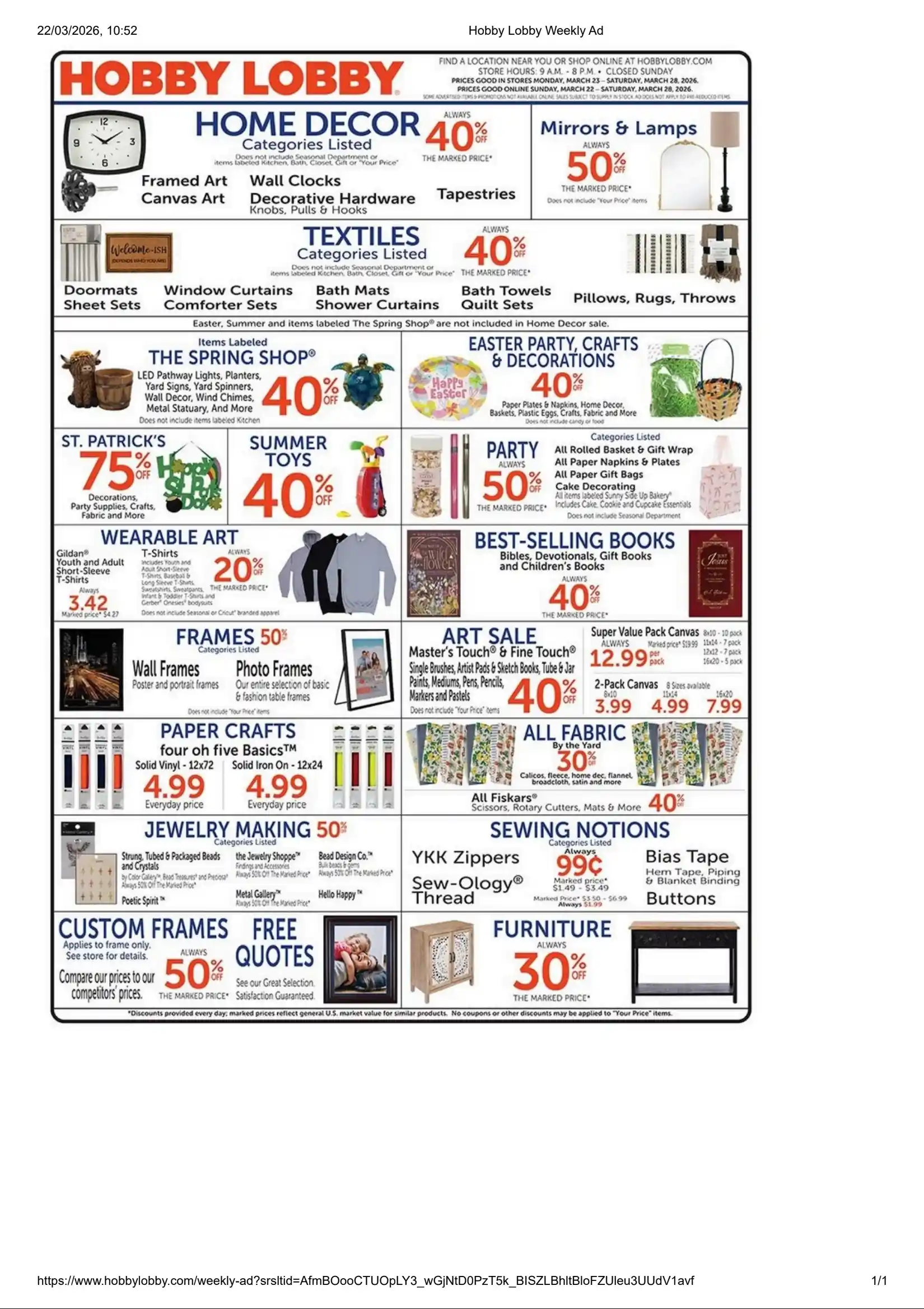 Current Sales Ad Preview : Hobby Lobby Weekly Ad Preview (3/22/26 – 3/28/26)
