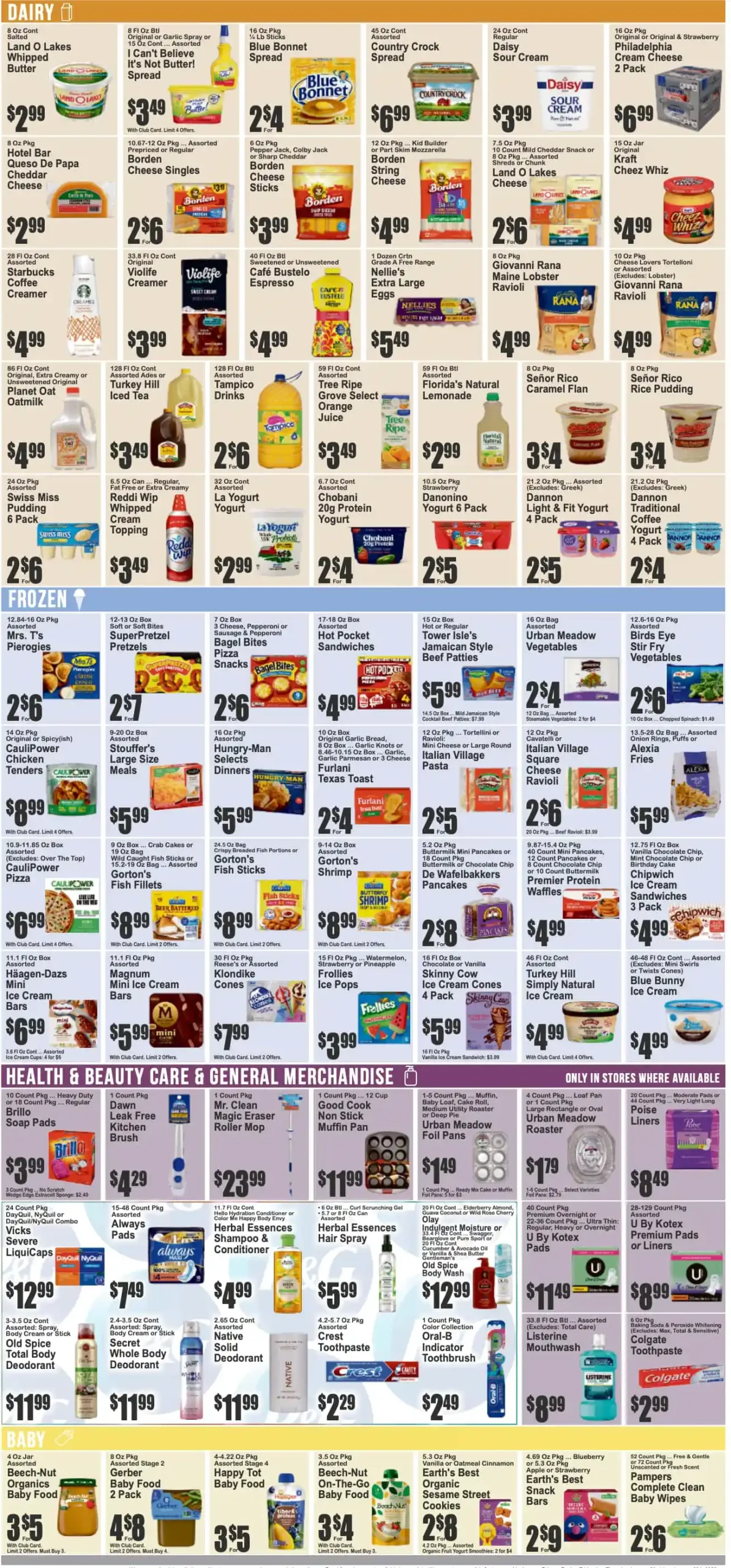 Weekly Ad promotions often feature milk, yogurt, frozen meals, and ice cream. Dairy and frozen products frequently come with bundle deals or discounts on multiple purchases.