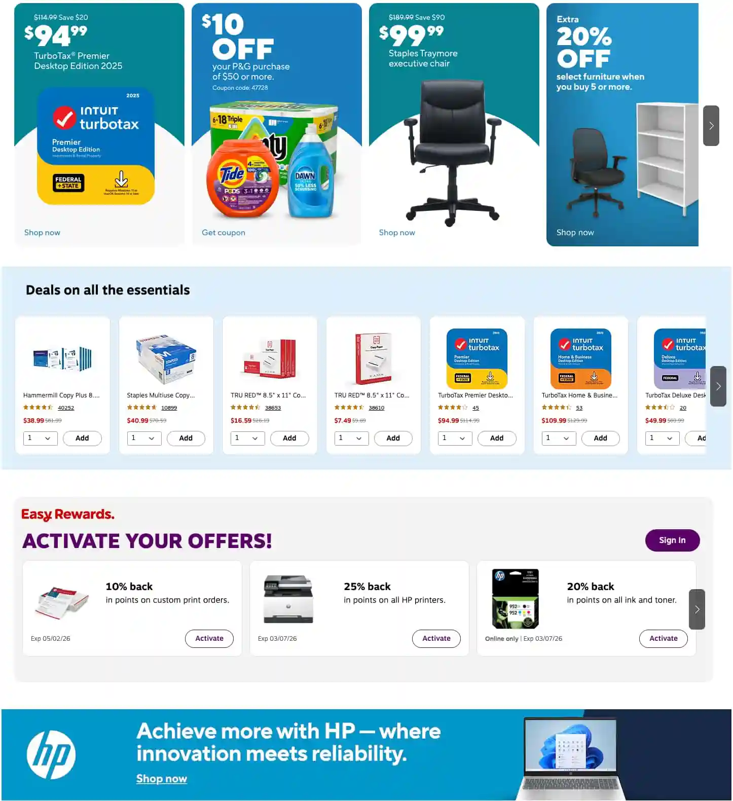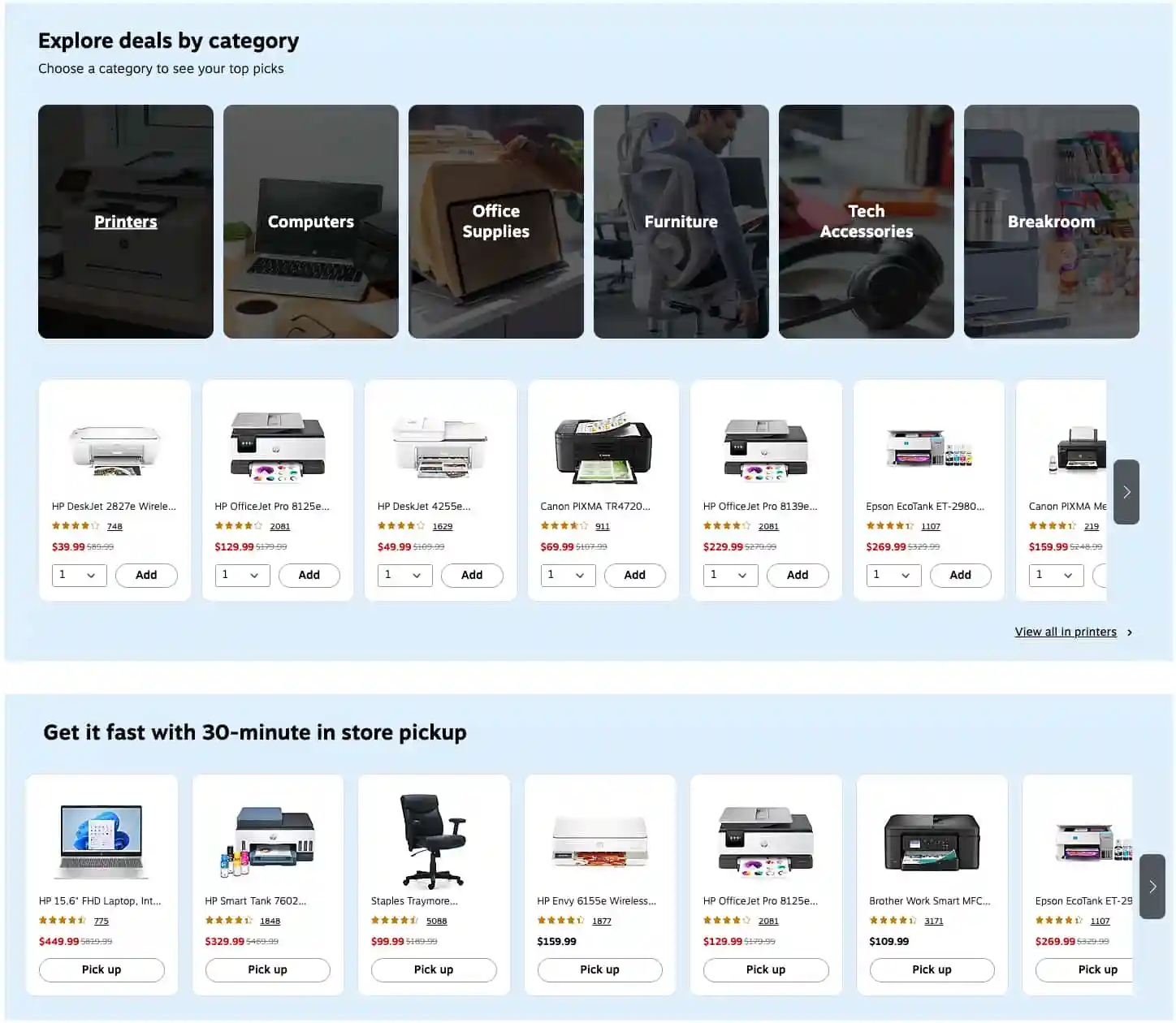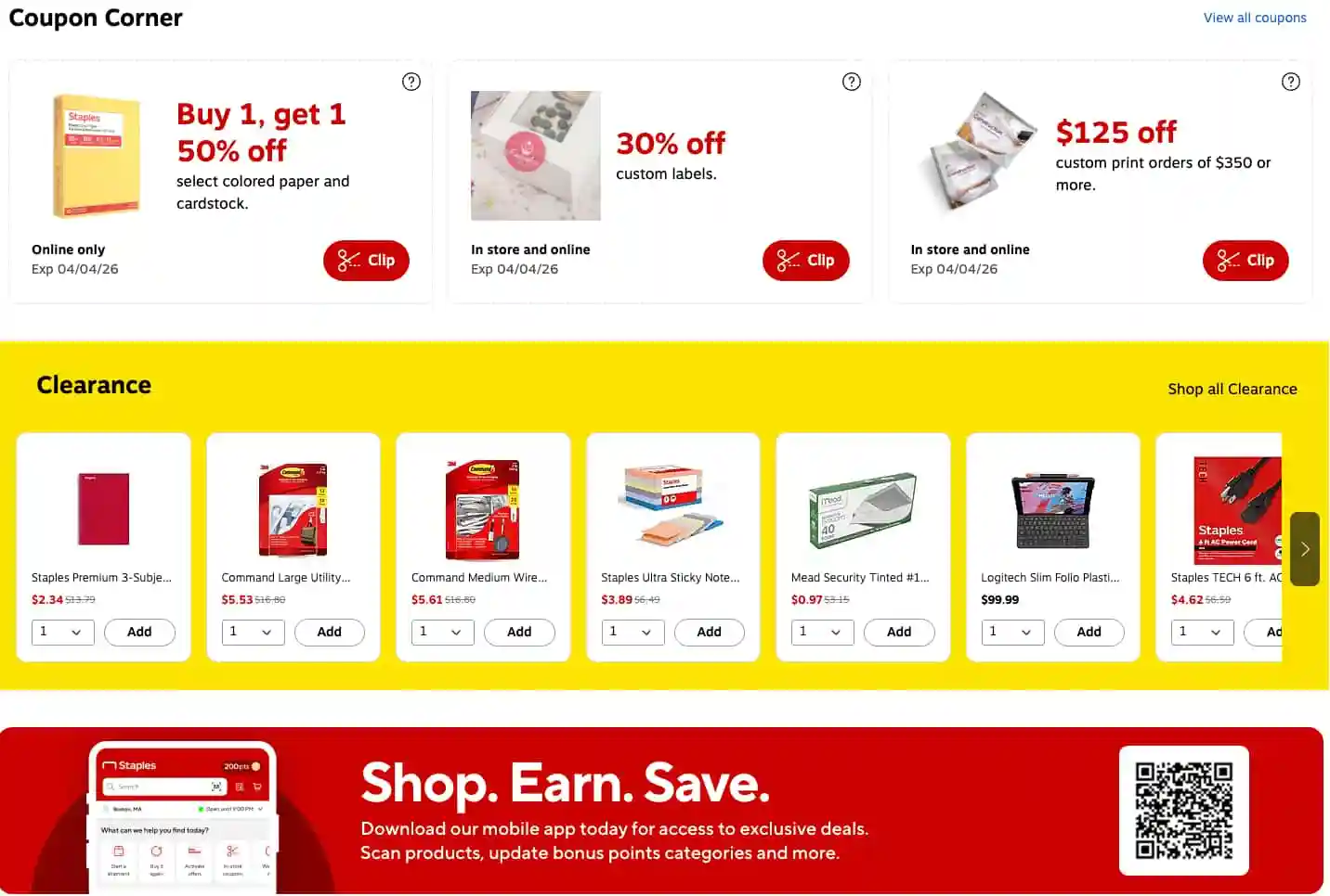 The Staples weekly flyer is super easy to navigate, with sales organized by category so you can quickly see if the items you need are on sale. Before you shop, be sure to check next week’s Staples ad to avoid overspending.