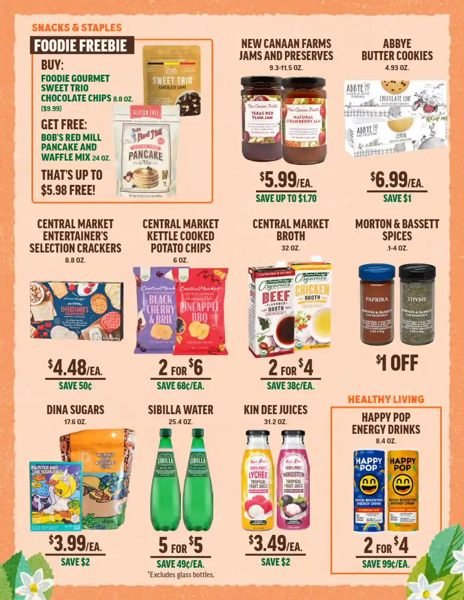 The Central Market weekly flyer is easy to navigate, with sales organized by category, making it simple to see if the products you need are on sale. Be sure to check next week’s Central Market ad to ensure you’re getting the best prices and avoid overspending.