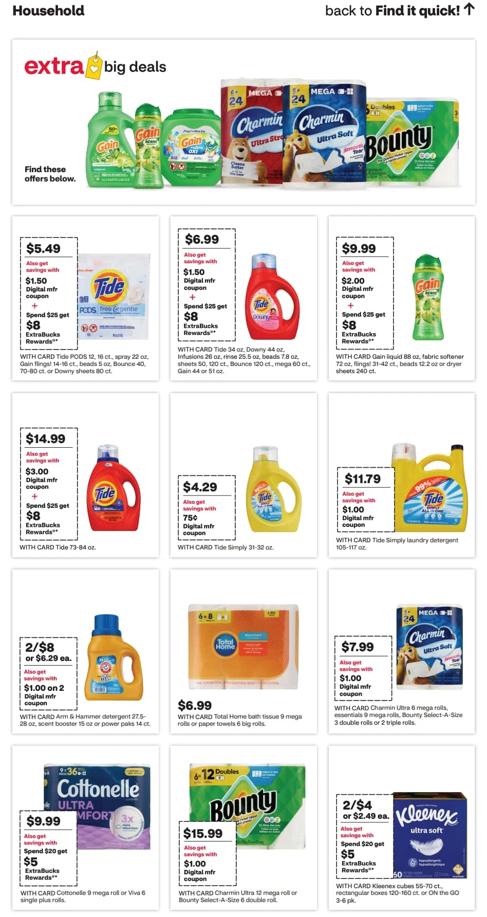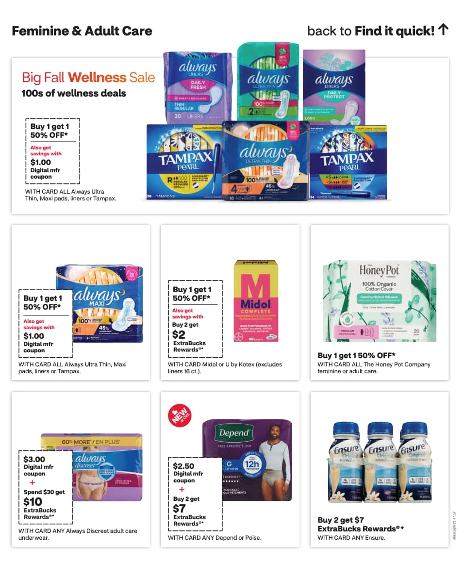 The CVS weekly flyer is super easy to navigate, with sales organized by category so you can quickly see if the items you need are on sale. Before you shop, be sure to check next week’s CVS ad to avoid overspending.