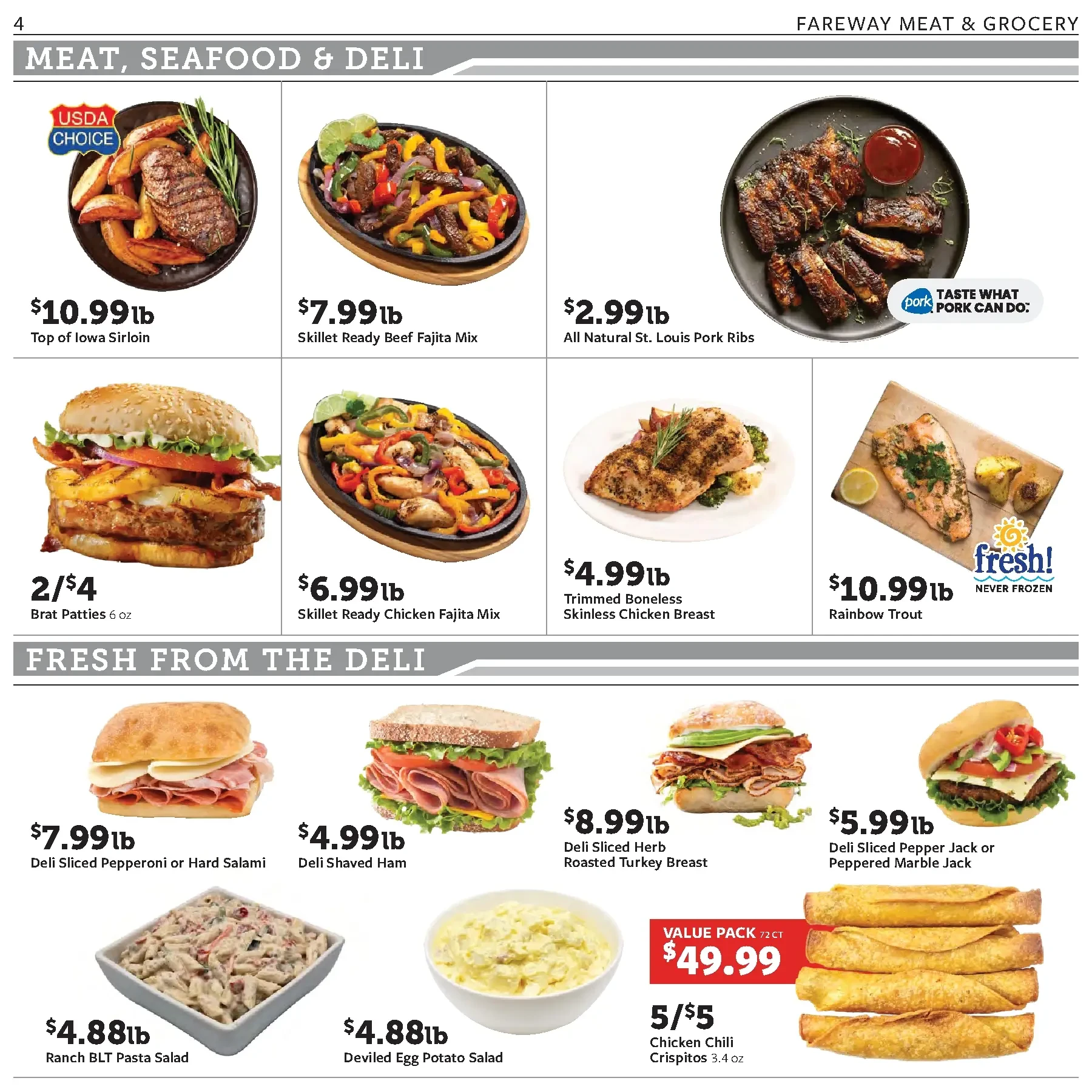 The Fareway weekly flyer is easy to navigate, with sales organized by category to help you quickly see if the products you need are on sale.