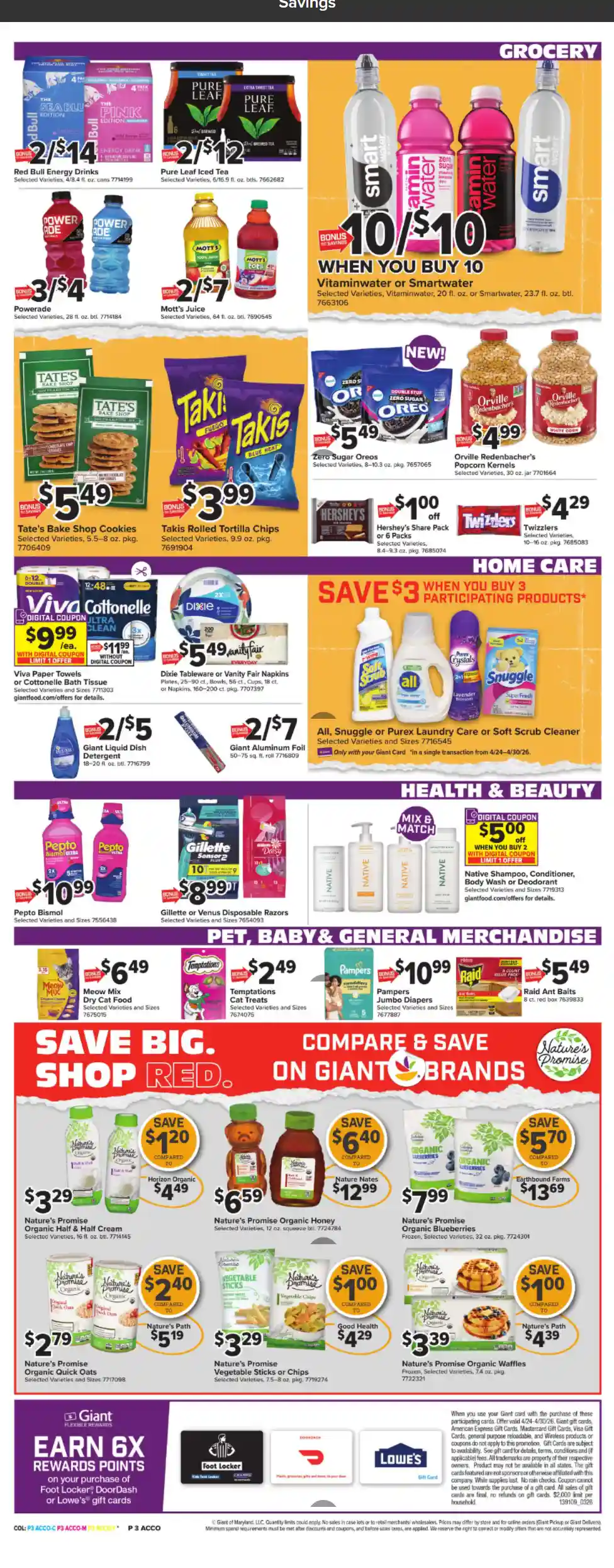 The Giant weekly flyer is easy to navigate, with sales organized by category to help you quickly see if the products you need are on sale.