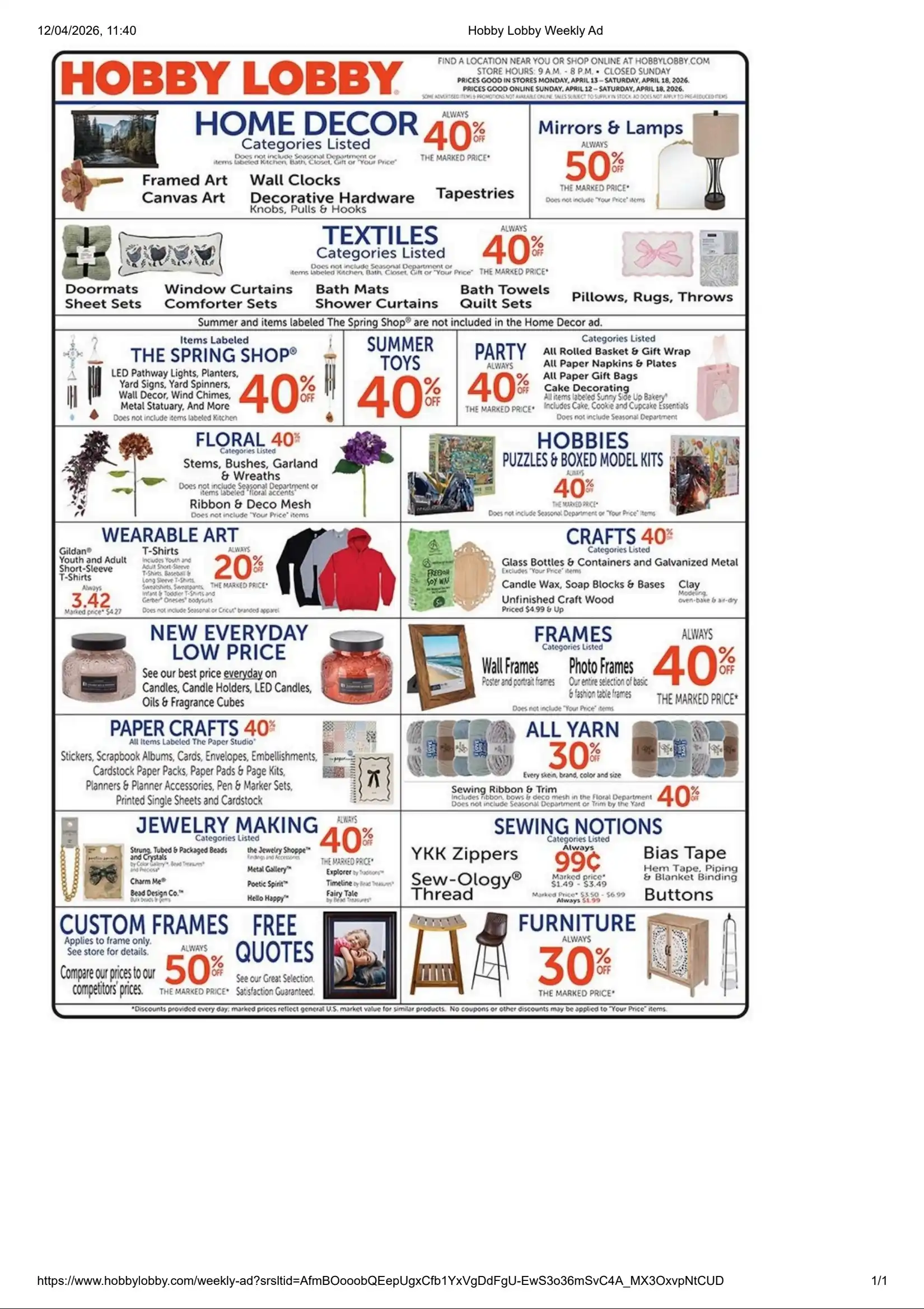 Current Sales Ad Preview : Hobby Lobby Weekly Ad Preview (4/12/26 – 4/18/26)