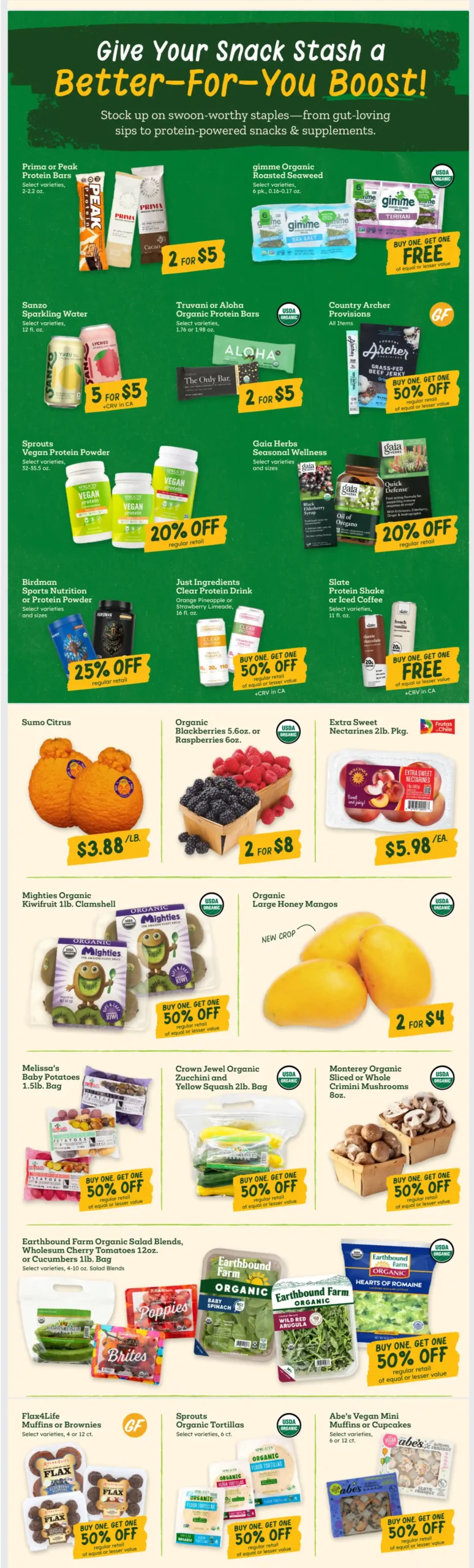 The Sprouts weekly ad is super easy to navigate, with sales organized by category so you can quickly see if the items you need are on sale. Before you shop, be sure to check next week’s Sprouts ad to avoid overspending.